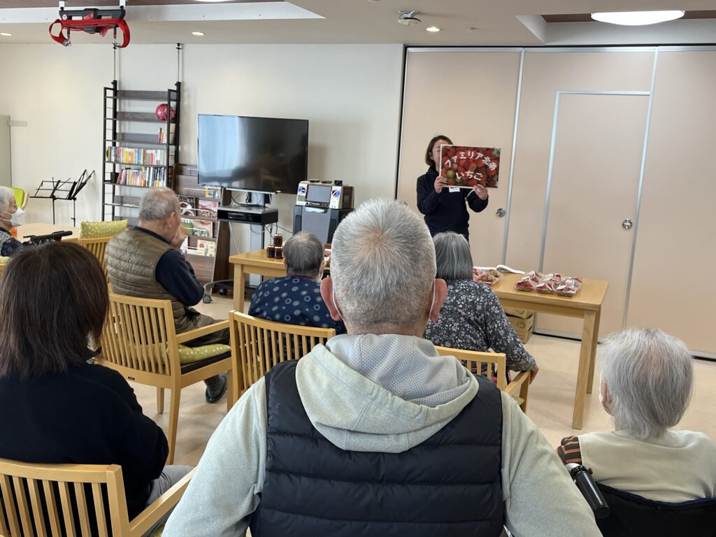 今回は、お客様のご家族も参加され、いちご栽培収穫〜加工品作りまでのお話をお楽しみいただきました。
