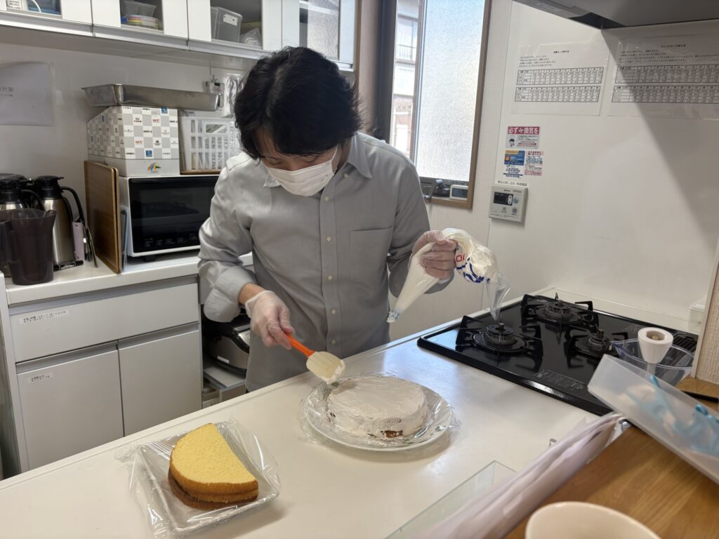 2026年4月16日 / 最終更新日 : 2026年4月16日 takashi_sakamoto ファミリア三郷アネックス おめでとうございます! 皆様こんにちは。 ファミリア三郷アネックスです。 今日お誕生日を迎えられたお客様がいらしゃいました。 そして、今日のケーキ作りは4月1日に入社した新卒職員が担当しました! よしクリームを綺麗に塗って。 慎重にお客様の元へ! 「良く出来ました!」いただきました笑 いつまでもお元気でファミリアにお越しください!