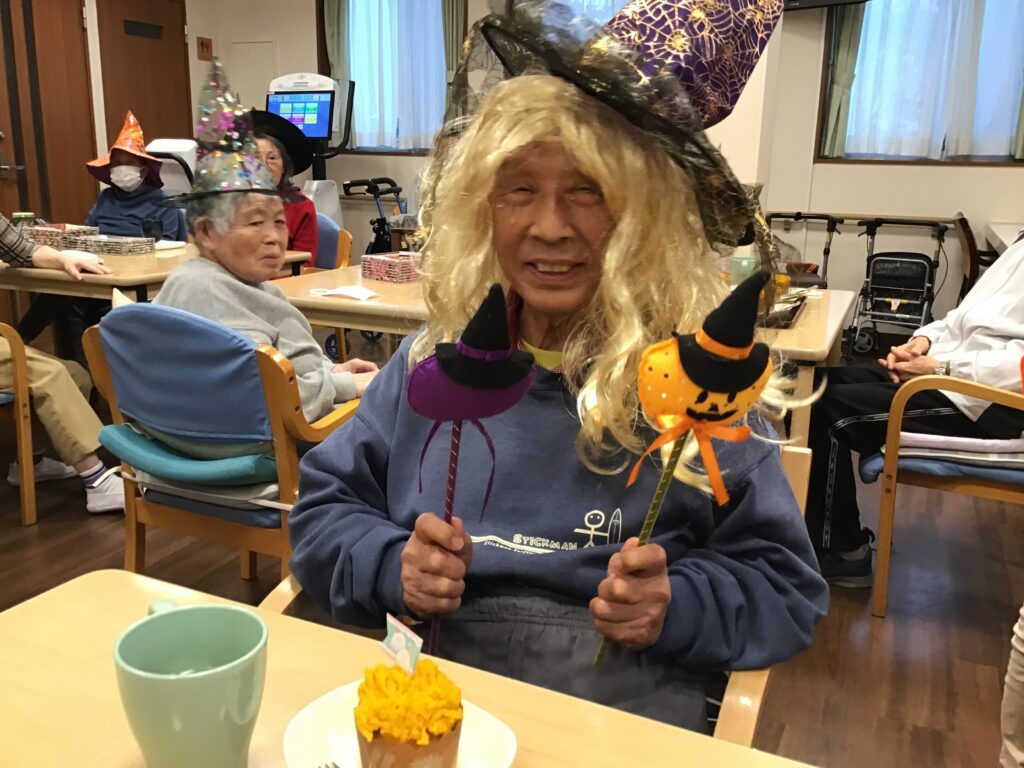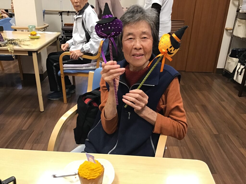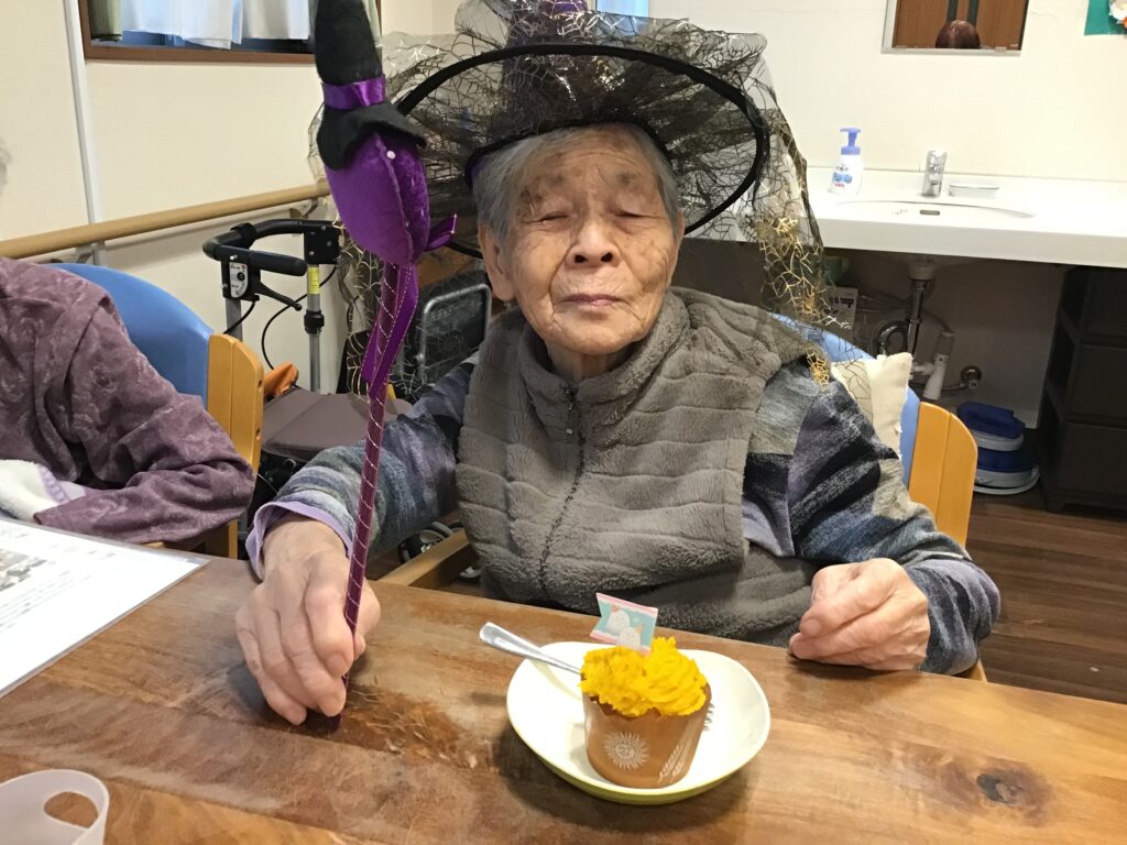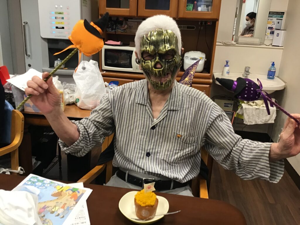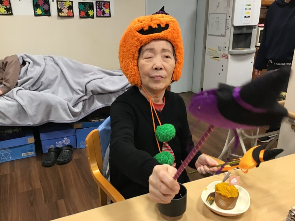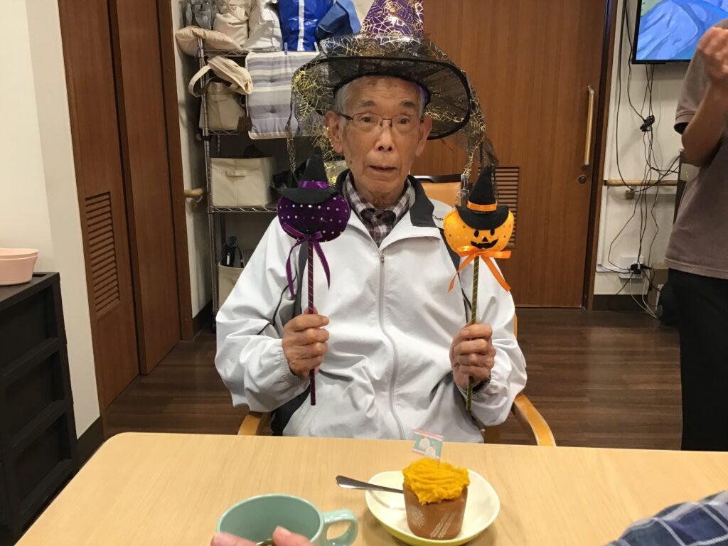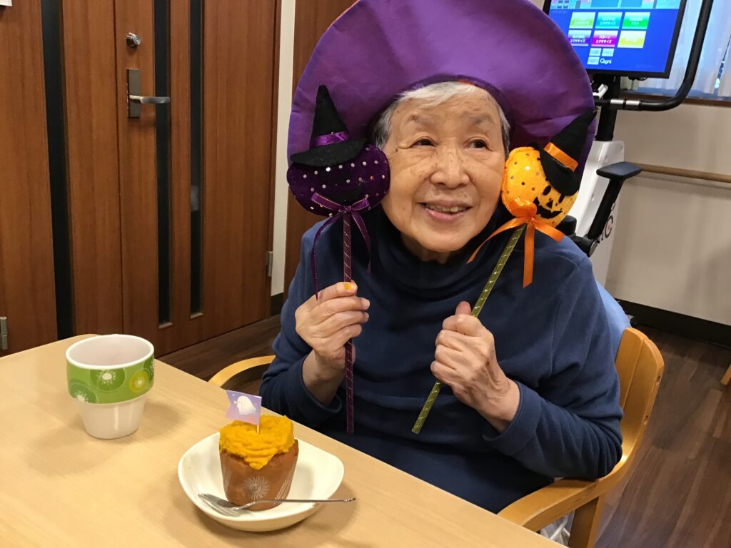 本日は、ハロウィンにちなんだおやつ作りをしました。かぼちゃを使ってクリームを作りマフィンにデコレーションしました。皆さんとても美味しいと召し上がられておりました♪仮装をして、撮影しました。