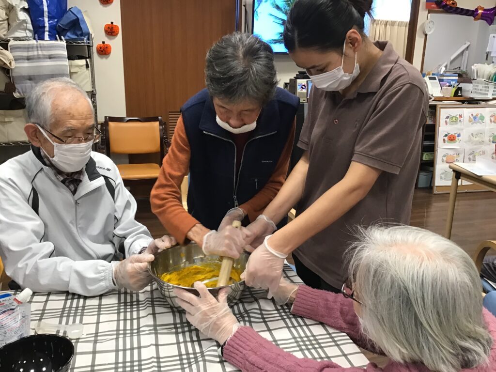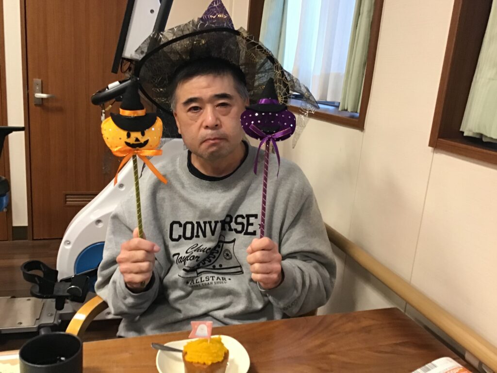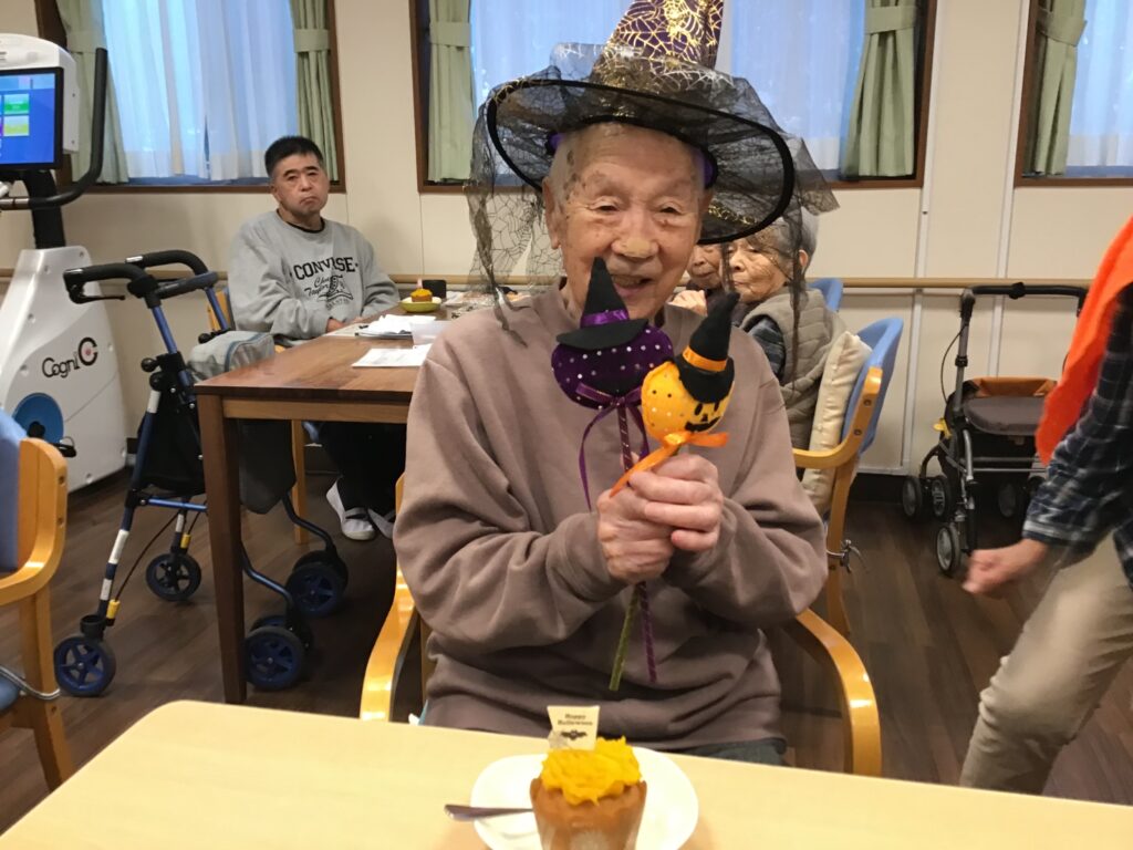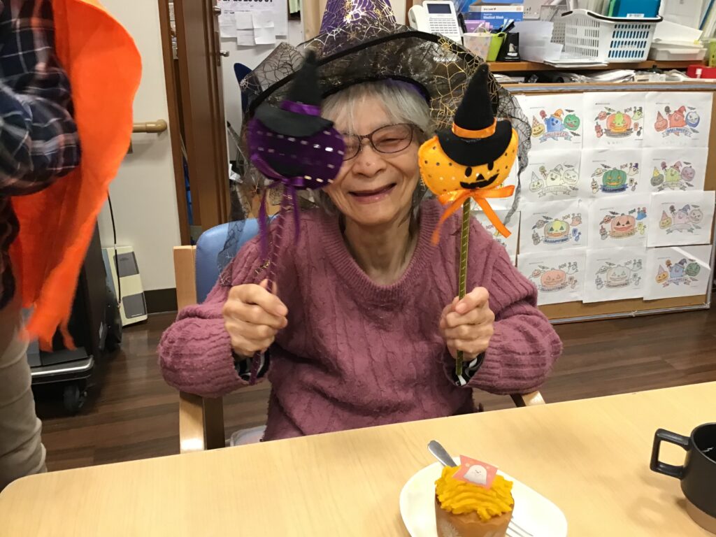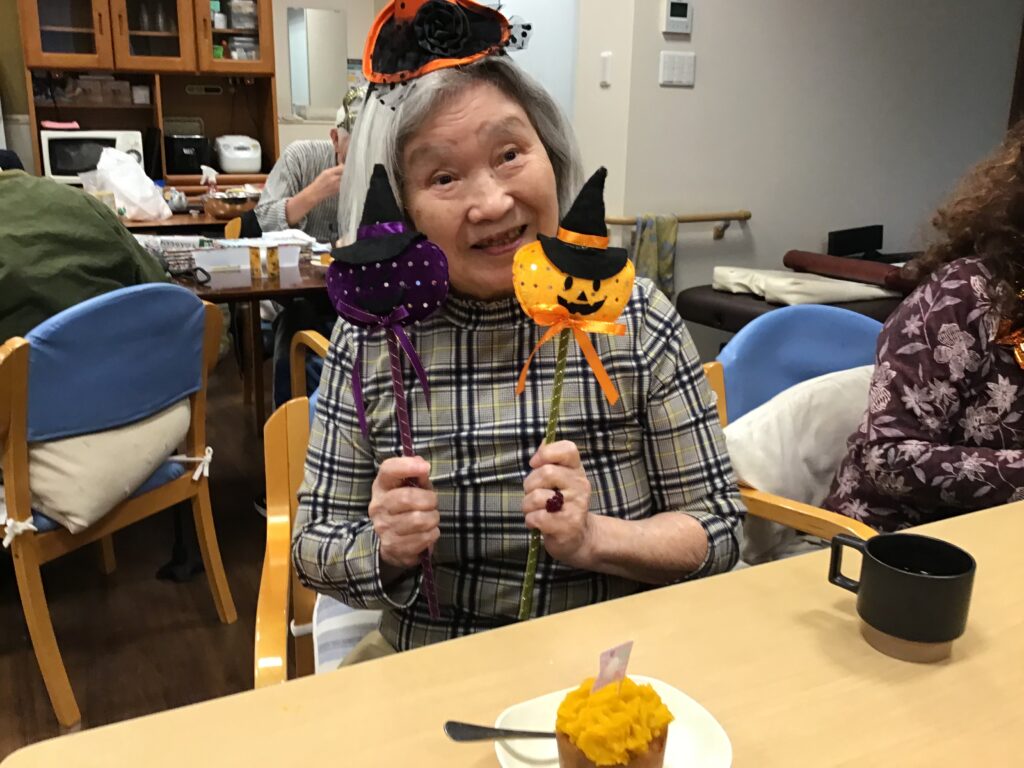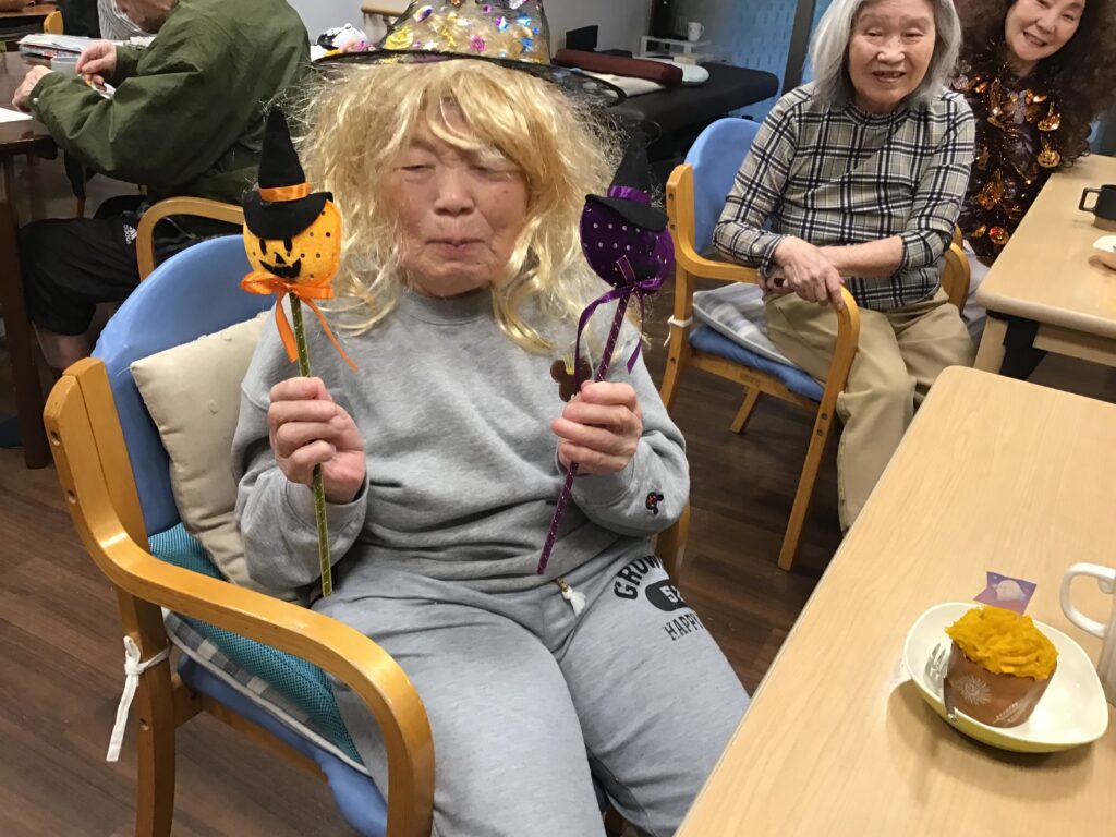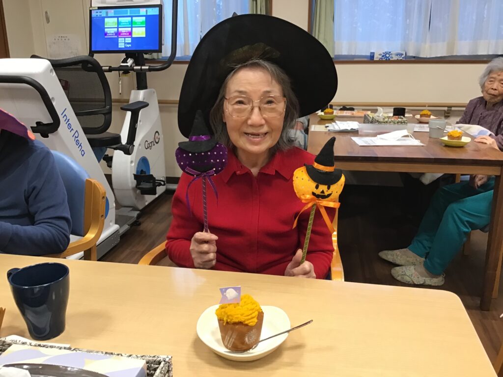 本日は、ハロウィンにちなんだおやつ作りをしました。かぼちゃを使ってクリームを作りマフィンにデコレーションしました。皆さんとても美味しいと召し上がられておりました♪仮装をして、撮影しました。