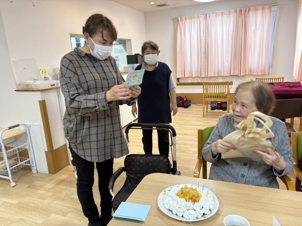 職員よりバースデーカードとプレゼント🎁の贈呈