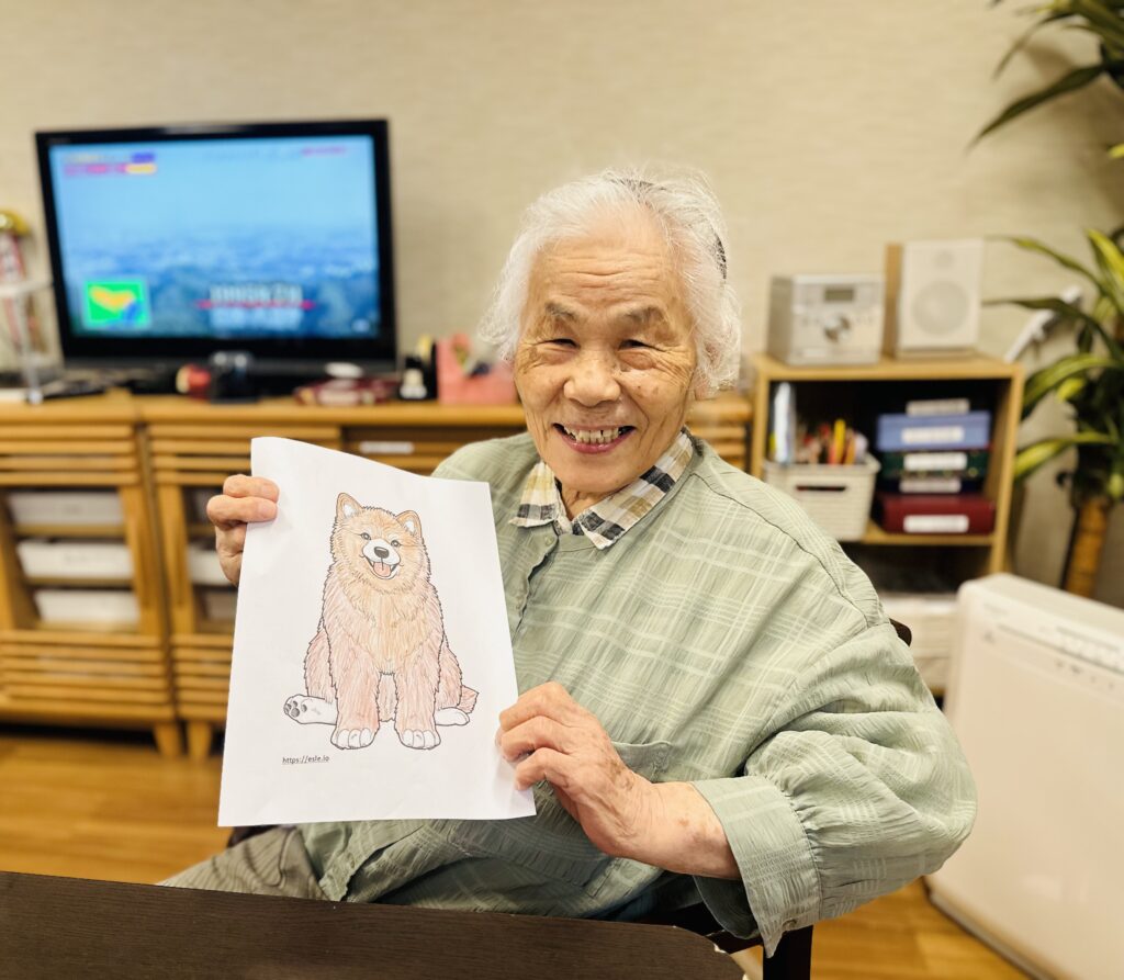 お客様が丁寧に仕上げてくださった『』の塗り絵がニコニコ笑顔に完成🐶✨