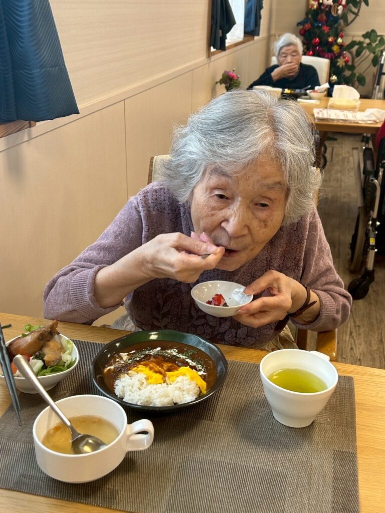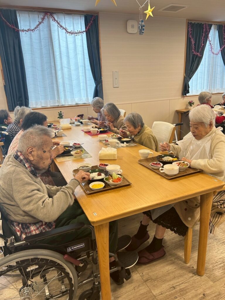 お昼ごはんはクリスマスメニューでレストランのような豪華なお食事を提供しました🍽✨
