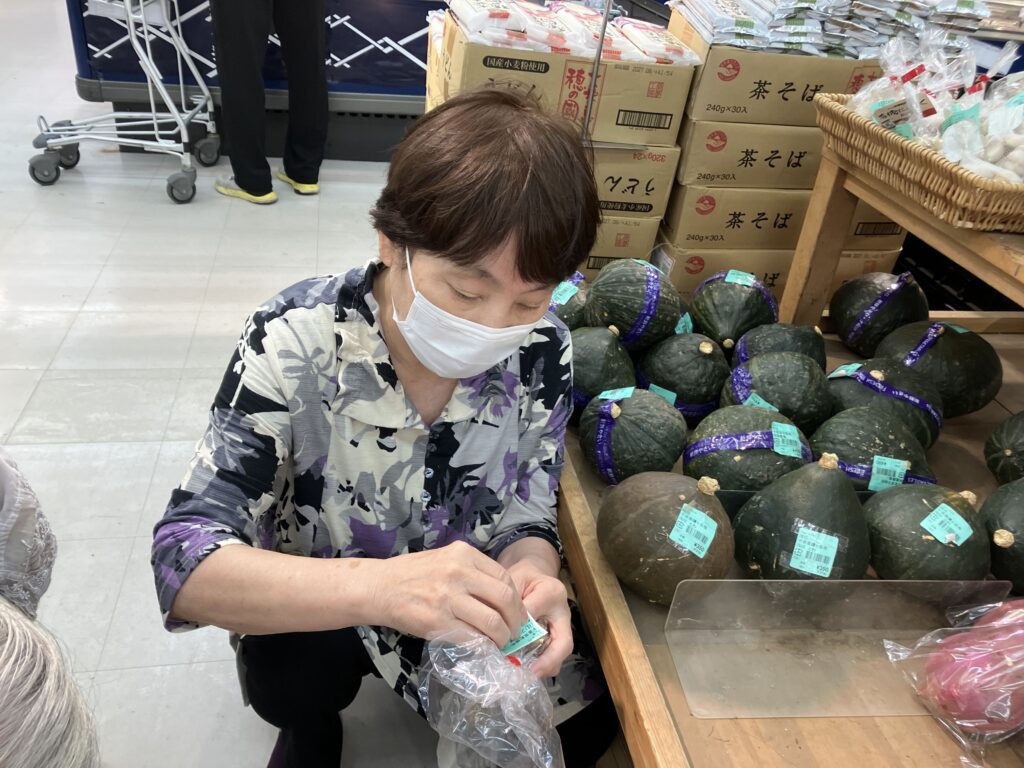 午後から、出荷の準備でまずは拭く人、袋詰めする人、仕上げのテープ留めする人に分かれ、作業はあっという間に終わり、いざ鎌ヶ谷のスーパーに出荷に行って来ました。値段のシールを貼り終わり、さて帰ろとした所で2袋もお買い上げして下さいました。ありがとうございます🙇♀️