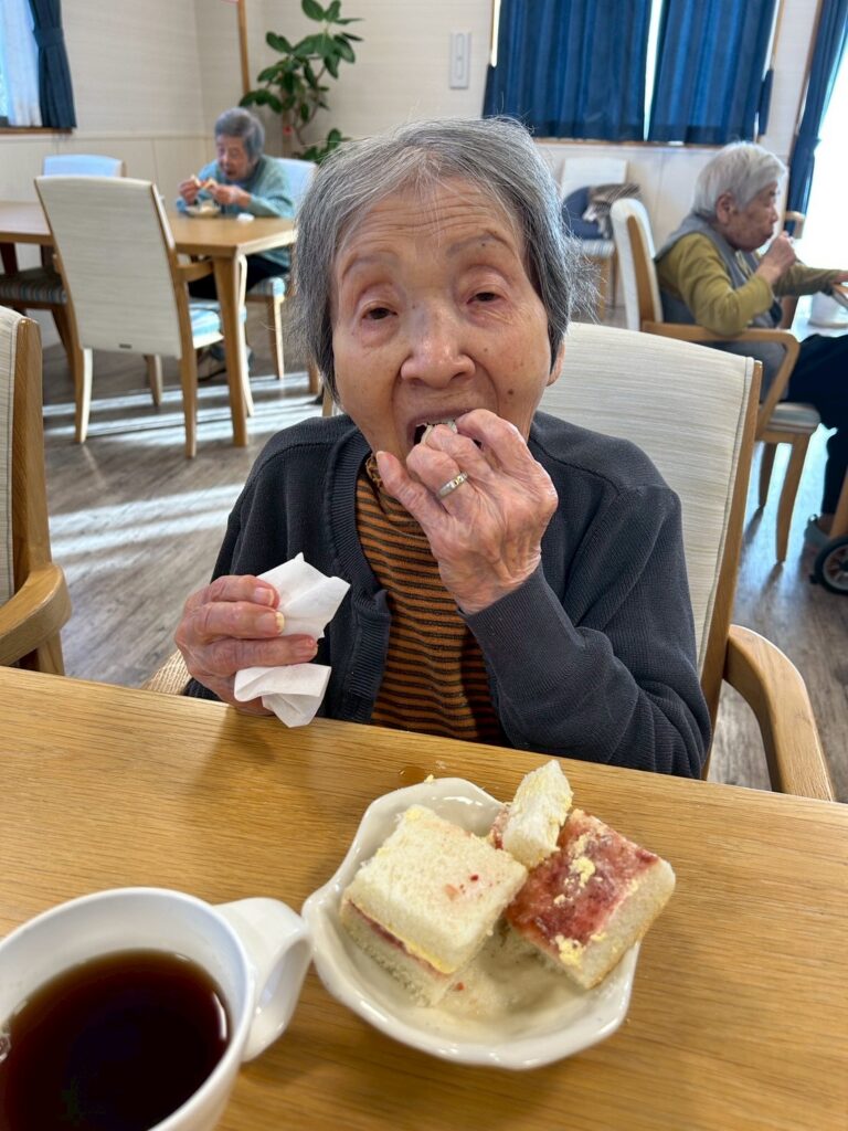 今日のおやつはいちごのフルーツサンドです🍓