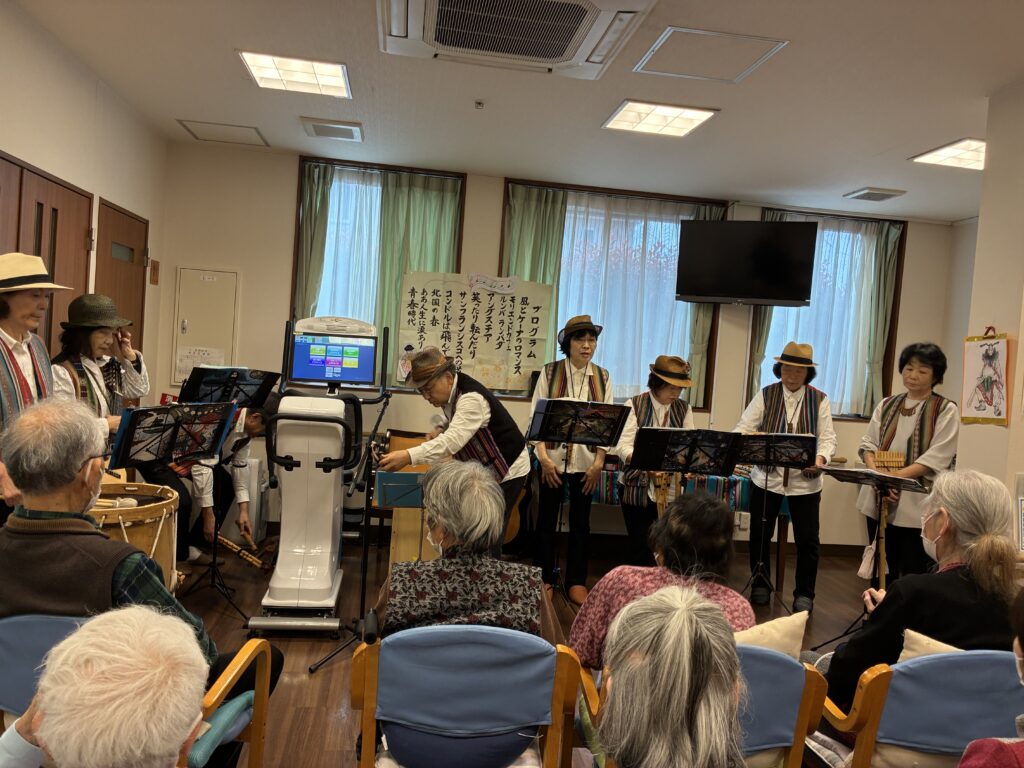 色々楽器を使い、北国の春や人生になみだありなど、演奏してくれたり、ジャンケンゲームや、手遊びなどして、