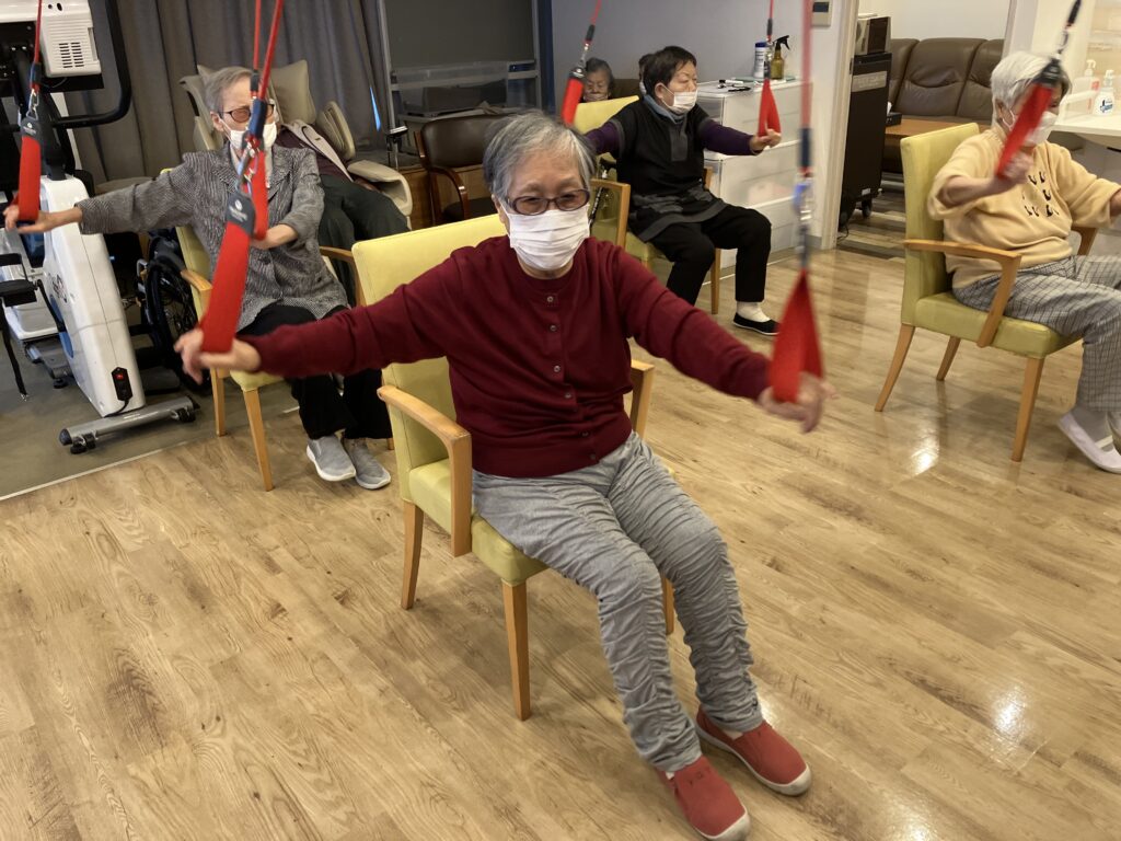 ファミリア市川の午前の日課はレッドコード運動になります。
