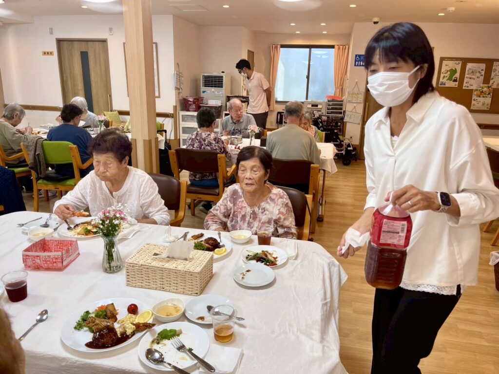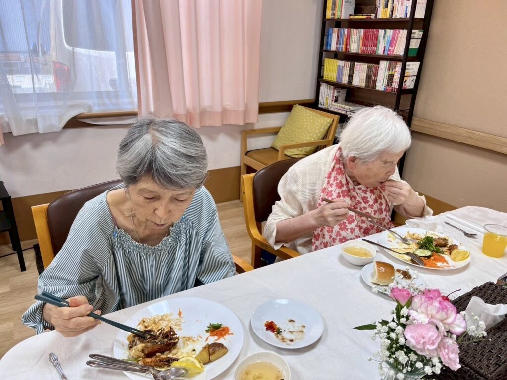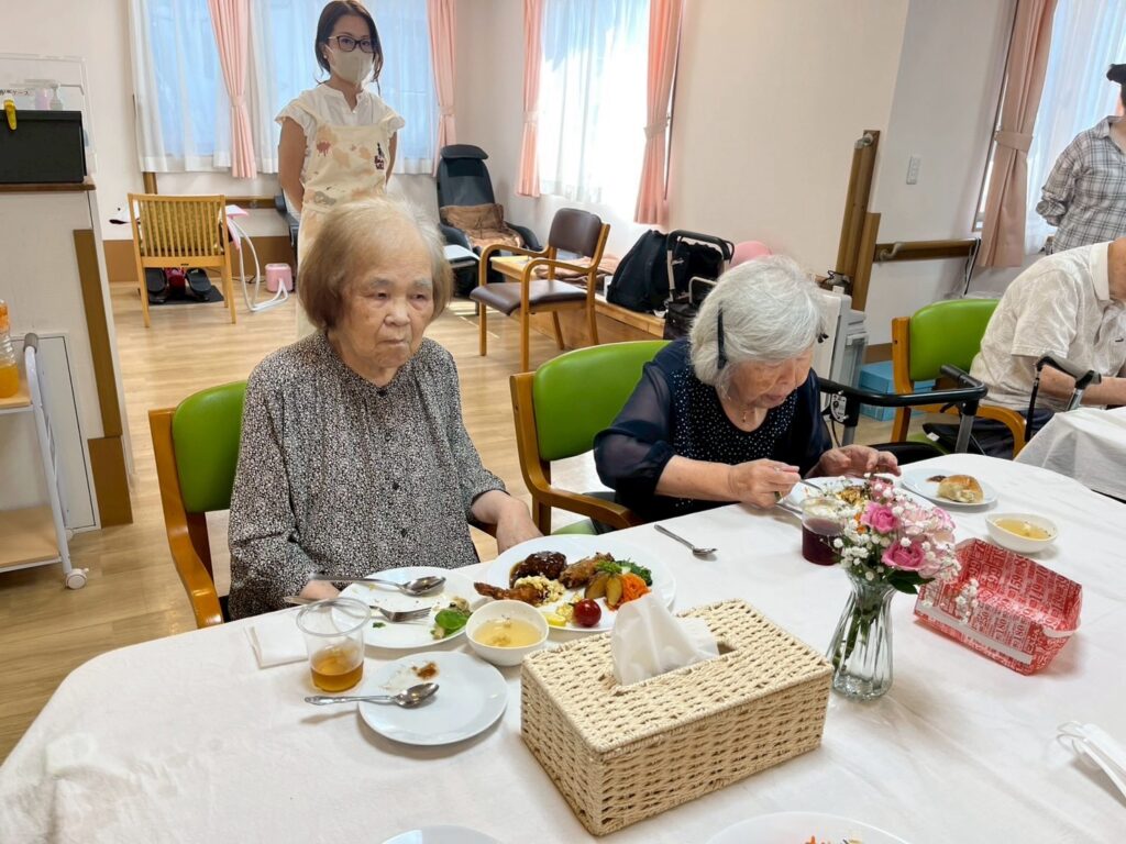 セントラルキッチン「楽」のスタッフが丹精込めて作ったお料理を召し上がって頂いているご様子です。