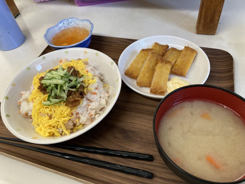 穴子飯とがんす、団子汁となります。
