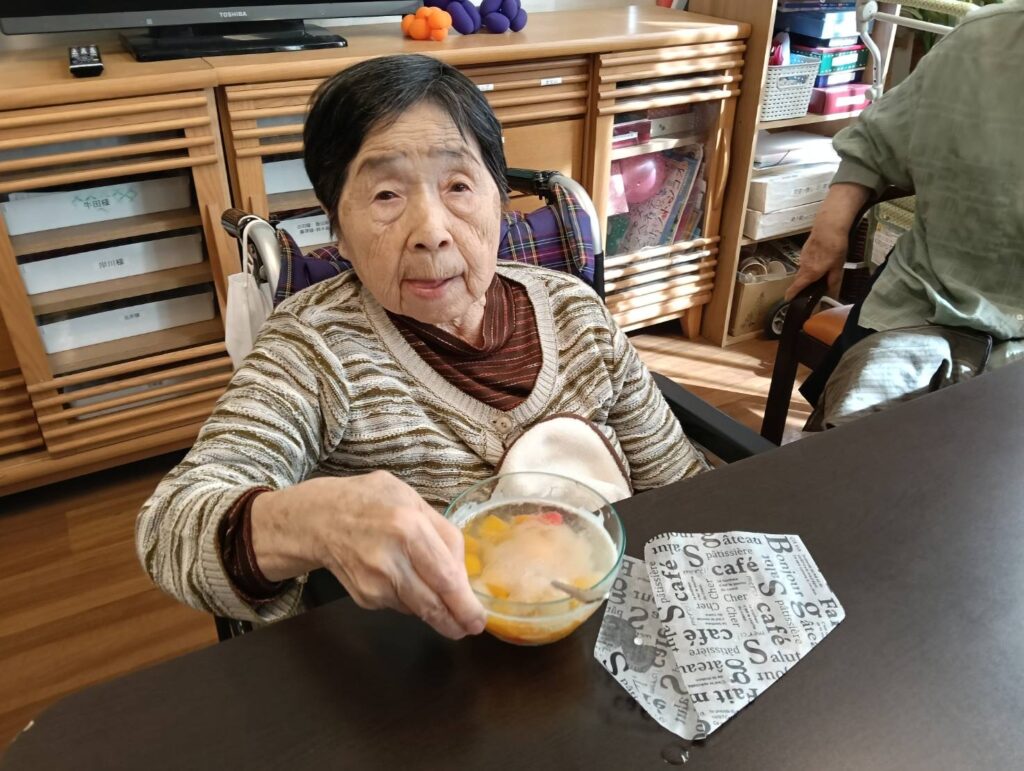 2026年4月19日 / 最終更新日 : 2026年4月20日 tamai お知らせ 日曜日おやつ🍘 こんにちは😃ファミリアサ高住です。今日も素晴らしい天気です。本日のおやつはさっぱりフルーツカクテルです。 さっぱりしてとても好評でした♪