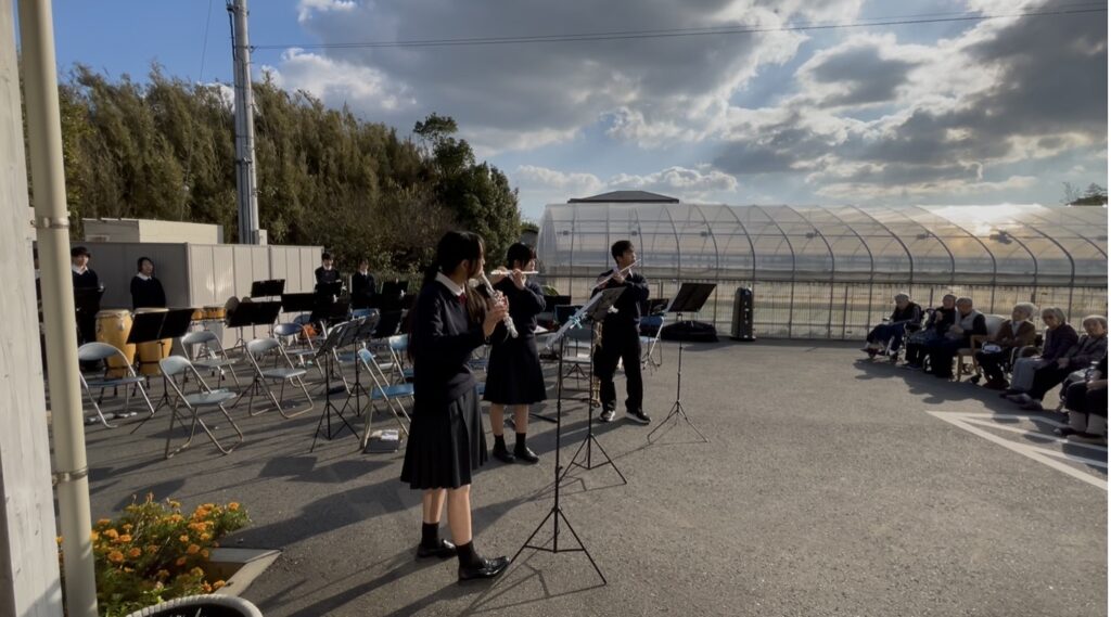天候にも恵まれ、入居者様も外で気持ち良く音楽を楽しみました。