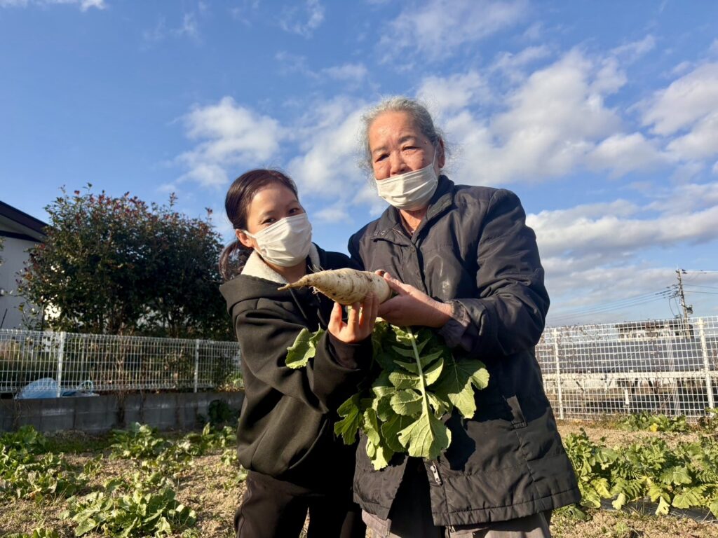 青空の下で皆様にお手伝いして頂いた大根の収穫、種から芽が出てスクスク育ちこんな立派な大根が出来ました😊次回の収穫は何でしょか??楽しみです(。・ω・)ノ゙