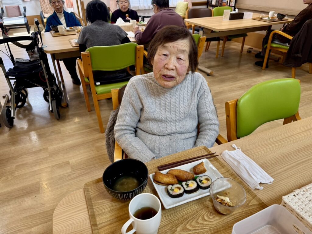 昼食は恵方巻きを召し上がっていただきました!
