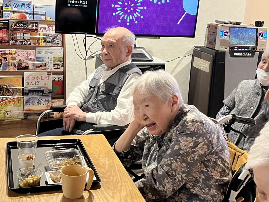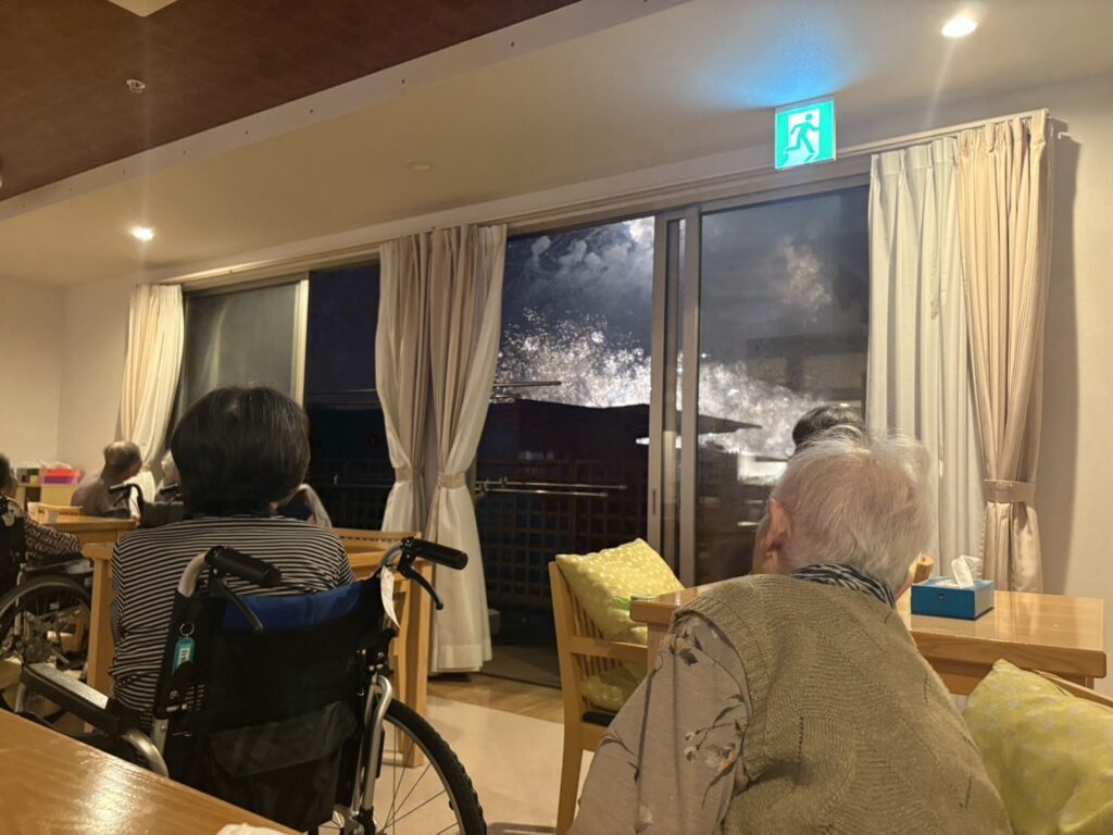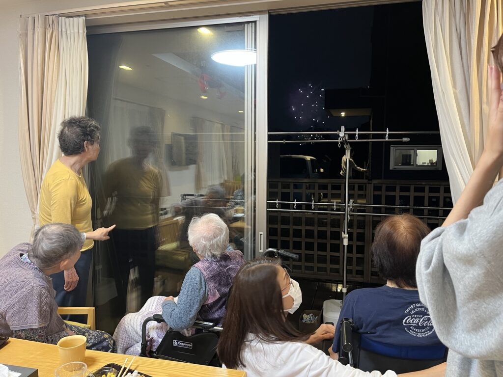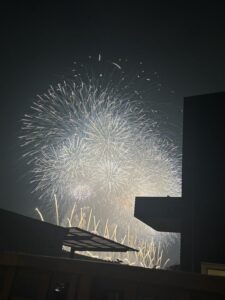 食事の後は、施設から花火鑑賞しました。間近に見られて、迫力満点でした!!!