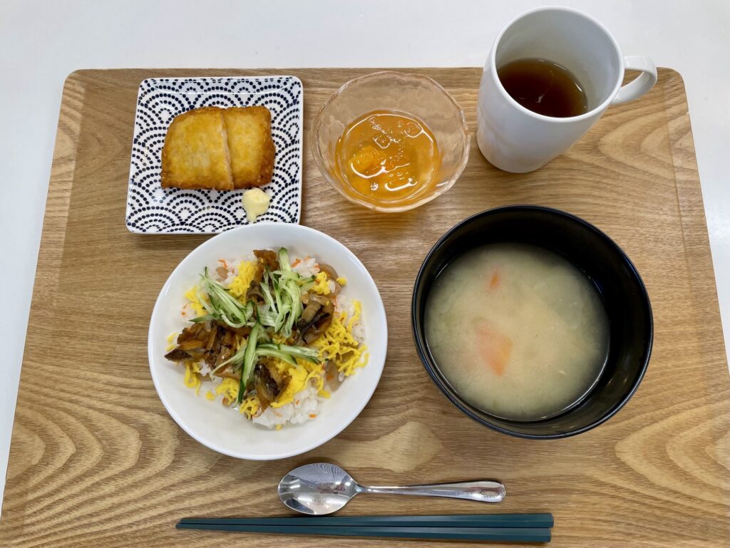*穴子ちらし寿司*がんす*オレンジゼリー*団子汁