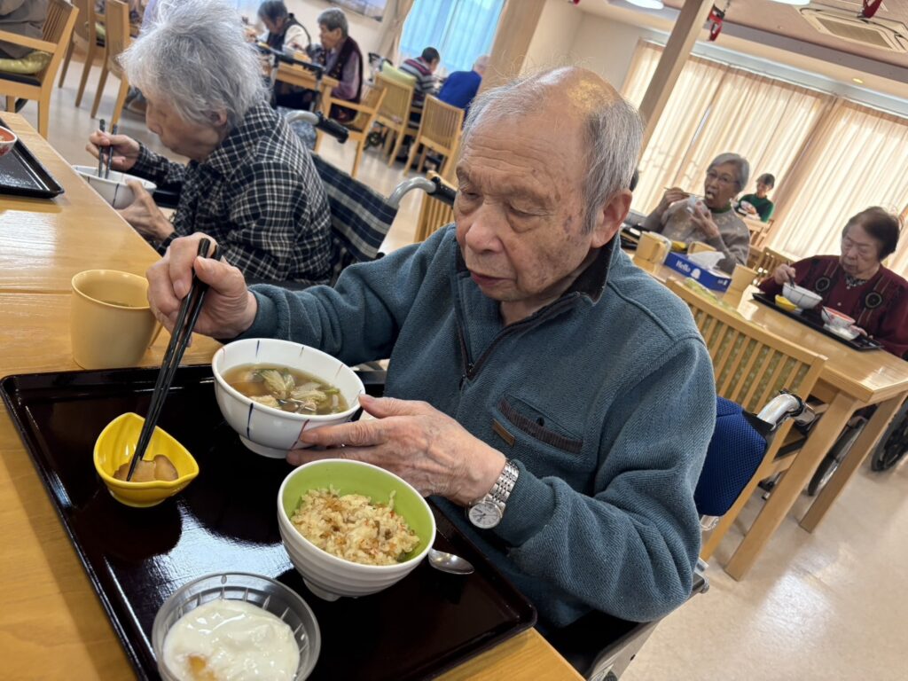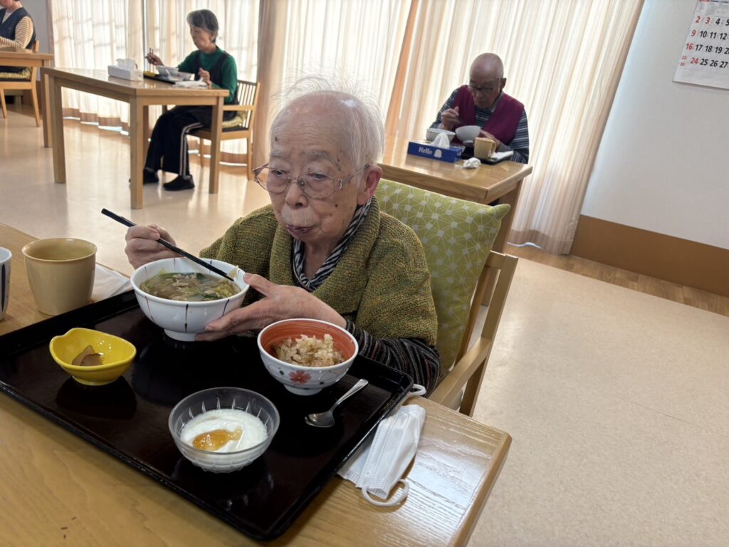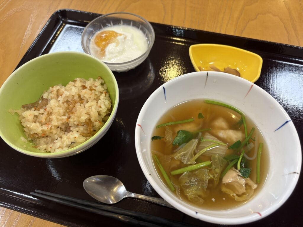 メニューは、鶏五目おこわ・きりたんぽ鍋・いぶりがっこ・りんごヨーグルトです。