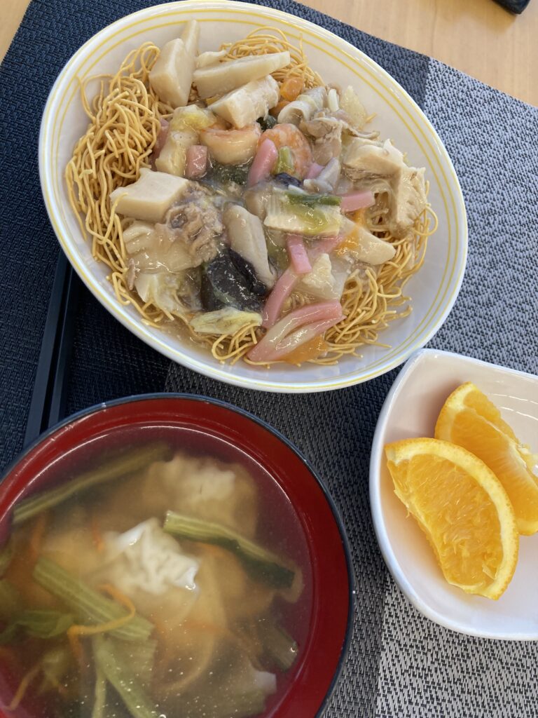 パリパリの麺の上に旨味たっぷりのあんがかかった皿うどん🎵