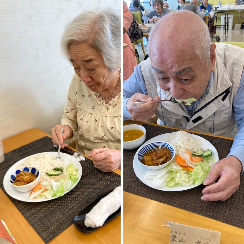 本日昼食にネパールからのスタッフ2人がセントラルキッチン『楽』のご協力のもとお客様にネパール料理を振る舞ってくれました♪